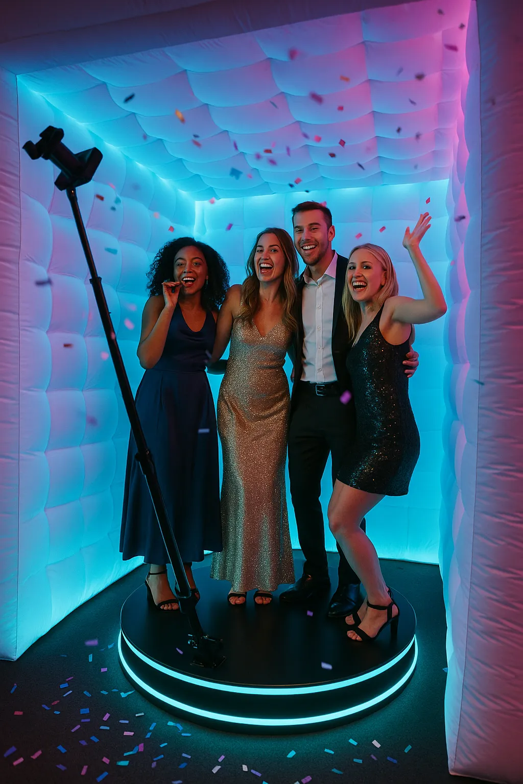 4K slow-motion videos. Instant QR/AirDrop/SMS sharing. Custom overlays. Fully staffed.